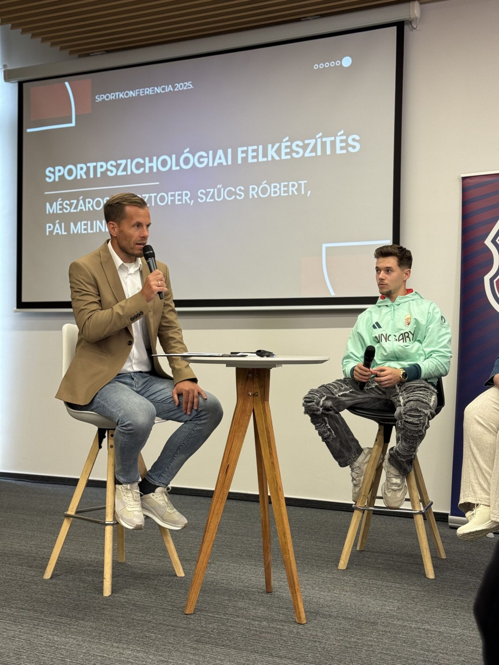 Neves előadók, sokak számára példakép olimpikonok váltották egymást a színpadon, ahol Ficsór Dávid kollégánk moderálta a nap történéseit, aki maga is számos nemzetközi tornát, versenyt megjárt a magyar strandlabdarúgó válogatott kapusaként, többek között az Európa Játokokon is képviselte hazánkat az olimpiai csapat tagjaként.
